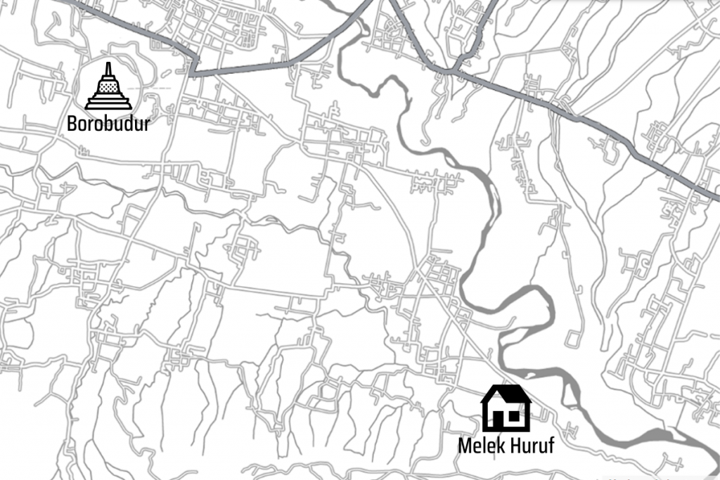 Melek Huruf dibuka pada 1 November 2022 di Dusun Pucungan, 5 Km dari Candi Borobudur. Berniat menjadi ruang untuk mengenal dan mengalami Magelang, tempat ini menawarkan Taman Baca, Pusat Info, Pondok, Warung, serta Tur.
